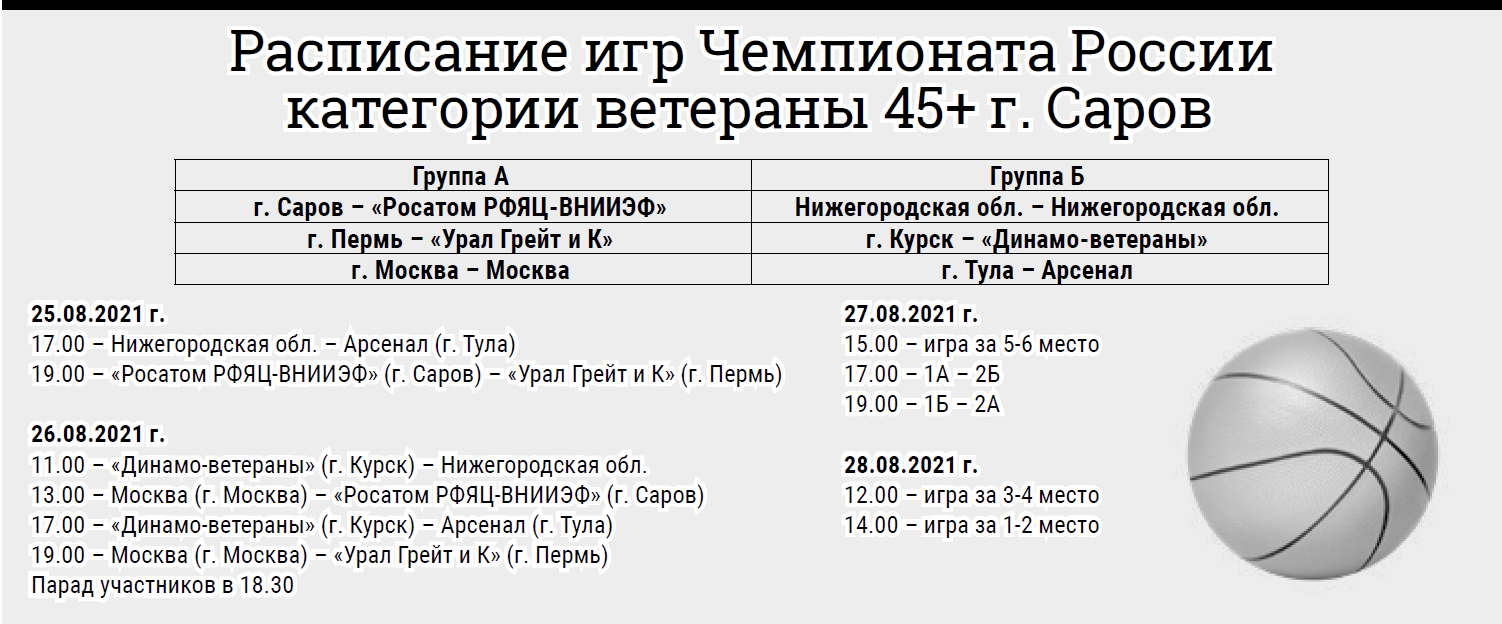 Оргкомитет чемпионата отмечает, что соревнования такого уровня, которые пройдут в Сарове, — не спонтанное решение, а часть обдуманного и методичного плана по популяризации баскетбола и привлечению в этот вид спорта молодежи и ветеранов. Оргкомитет выражает огромную благодарность РФЯЦ-ВНИИЭФ и лично Валентину Костюкову, Наталье Кочетковой и Ирине Старостиной; администрации Сарова и лично главе города Алексею Сафонову; клубу ветеранов спорта «Феникс» и лично Владимиру Иванову, директору БК «Нижний Новгород» Сергею Панову, а также директору СШ «Икар» Александру Сашкову.