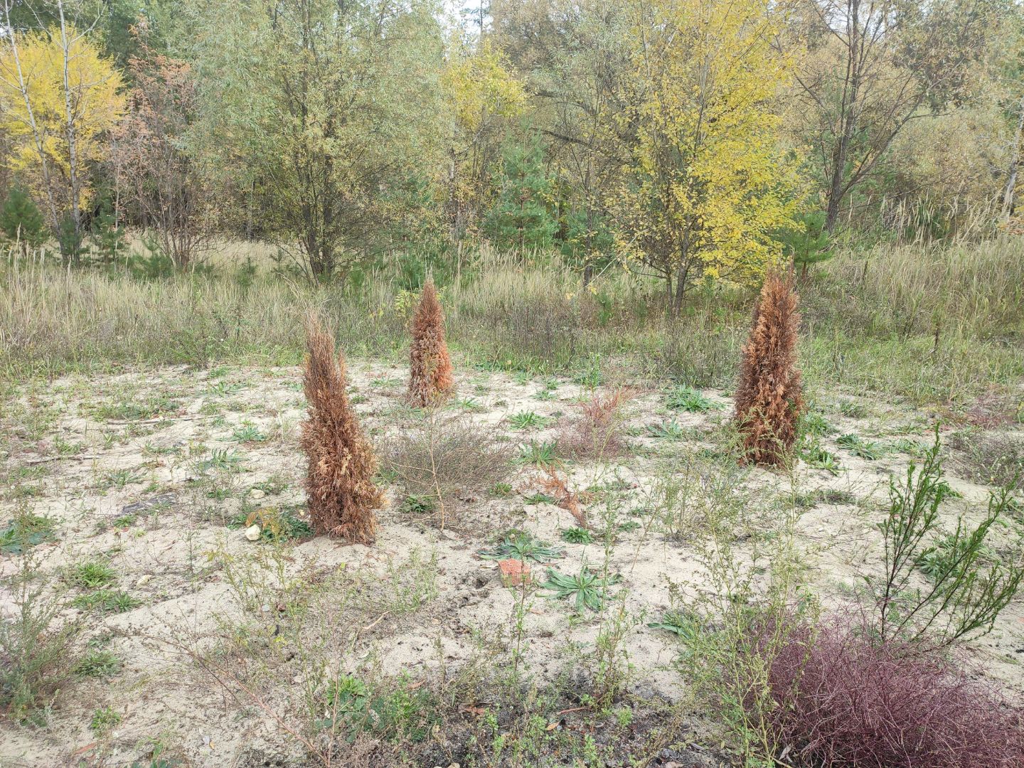 - Засохли элементы озеленения: 14 лип, 1 береза и 10 кустов (туи западные и можжевельник лежачий).