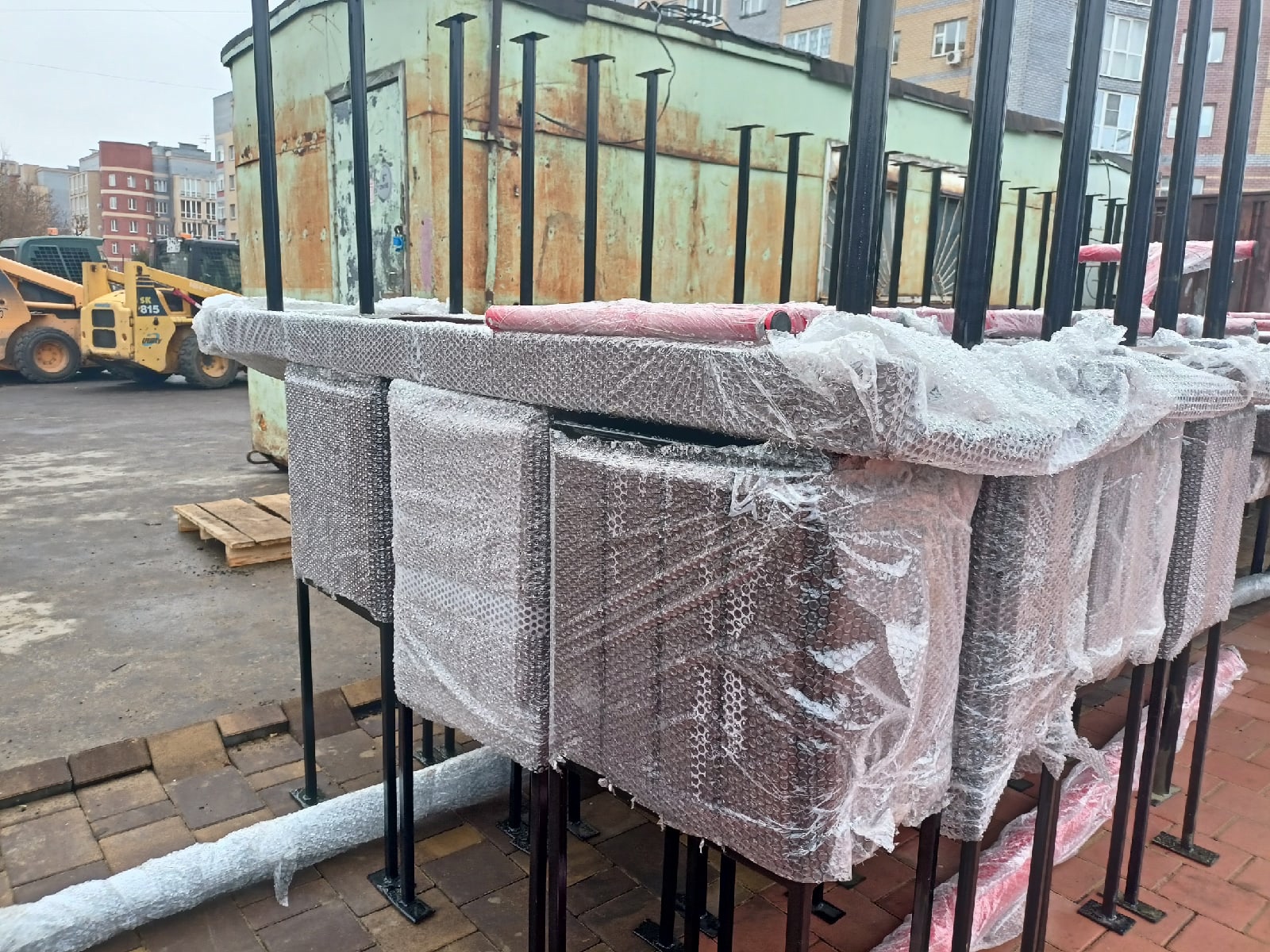 Кстати, вот там скамейки, как будто прикрученные шурупами к плитке — как они держатся? Любопытненько.