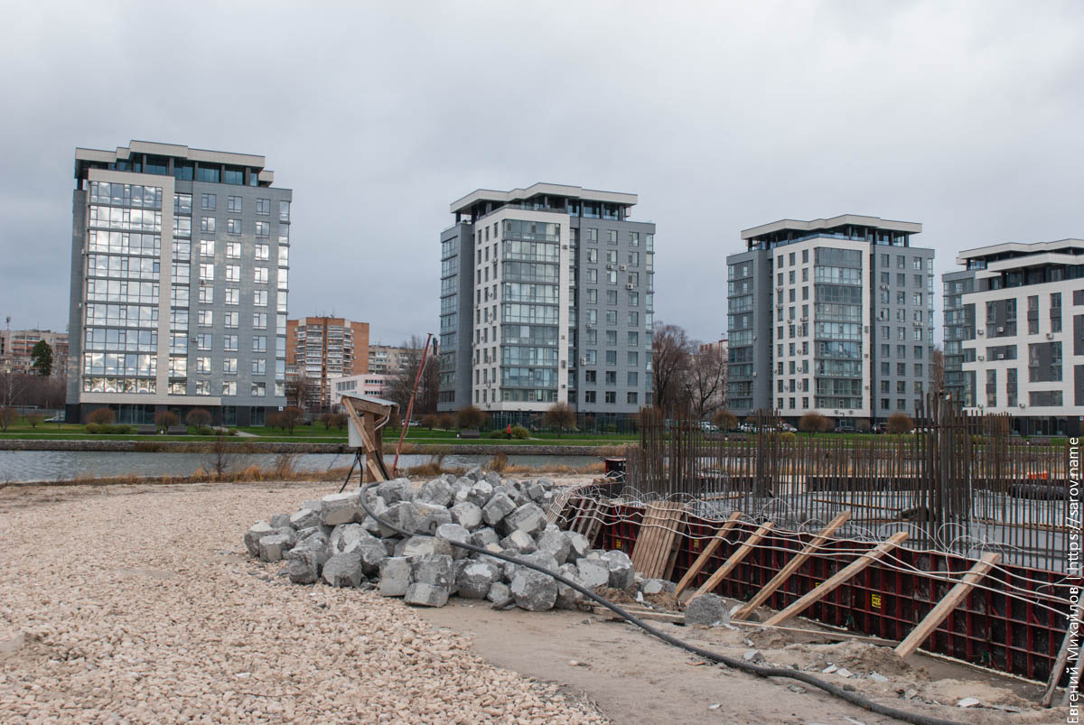 В середине ноября прогулялся до стрелки Саровки и Сатиса и посмотрел как проходит строительство апарт-отеля. Оказывается, уже многое сделано: