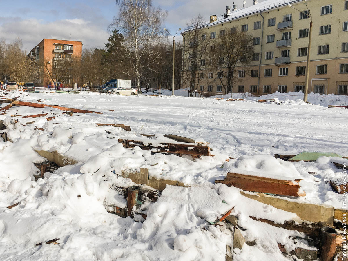 Начался слом хоккейной коробки «Сокол» на ул. Куйбышева, и borhomey посредством своего фотографического аппарата показывает, как это происходит.