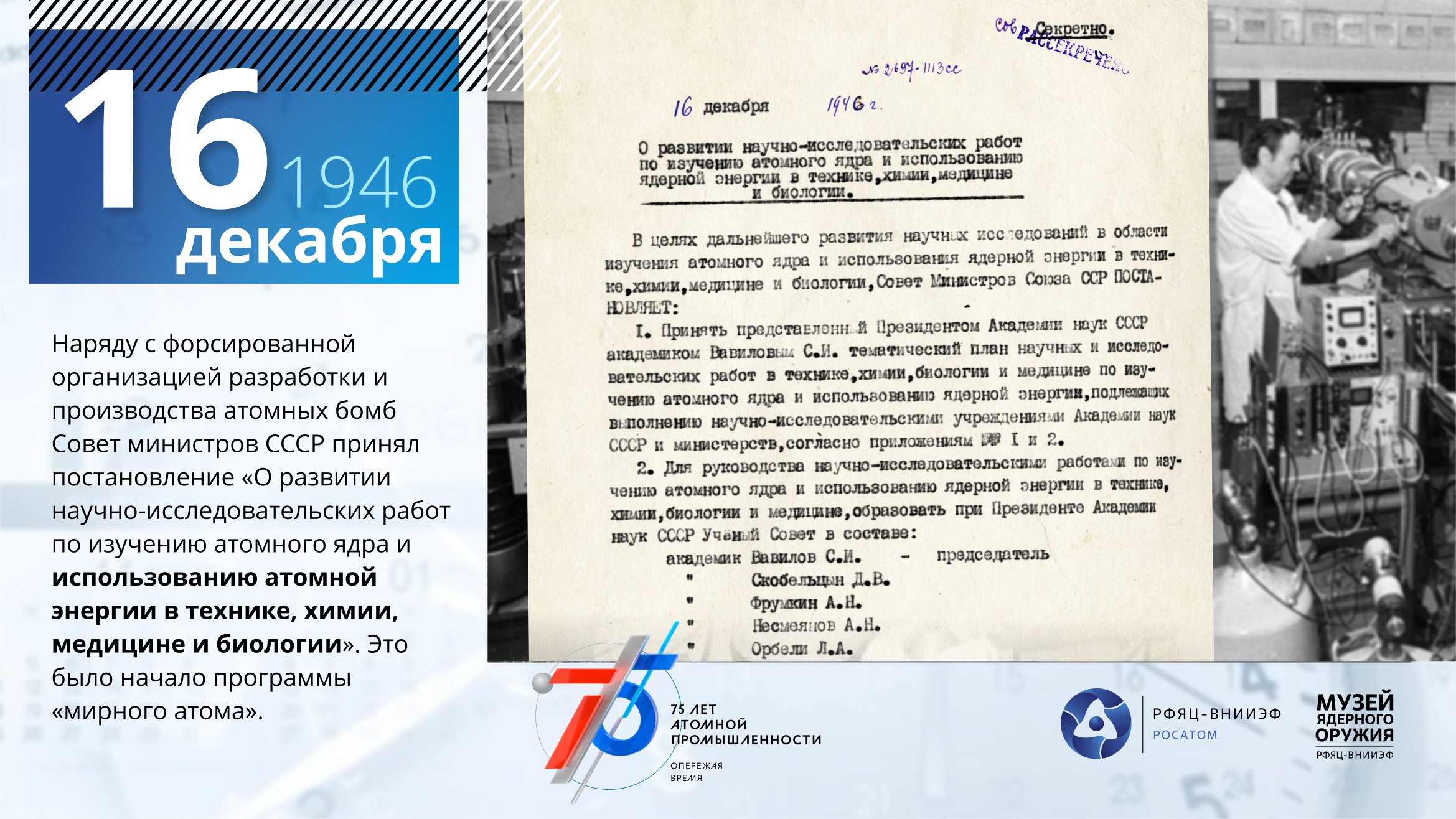 16 декабря — годовщина начала программы «мирного атома» в СССР
