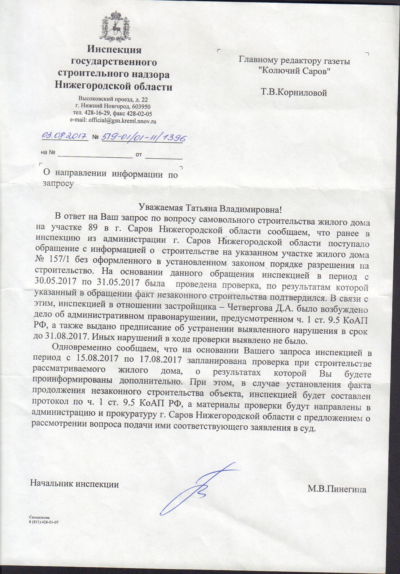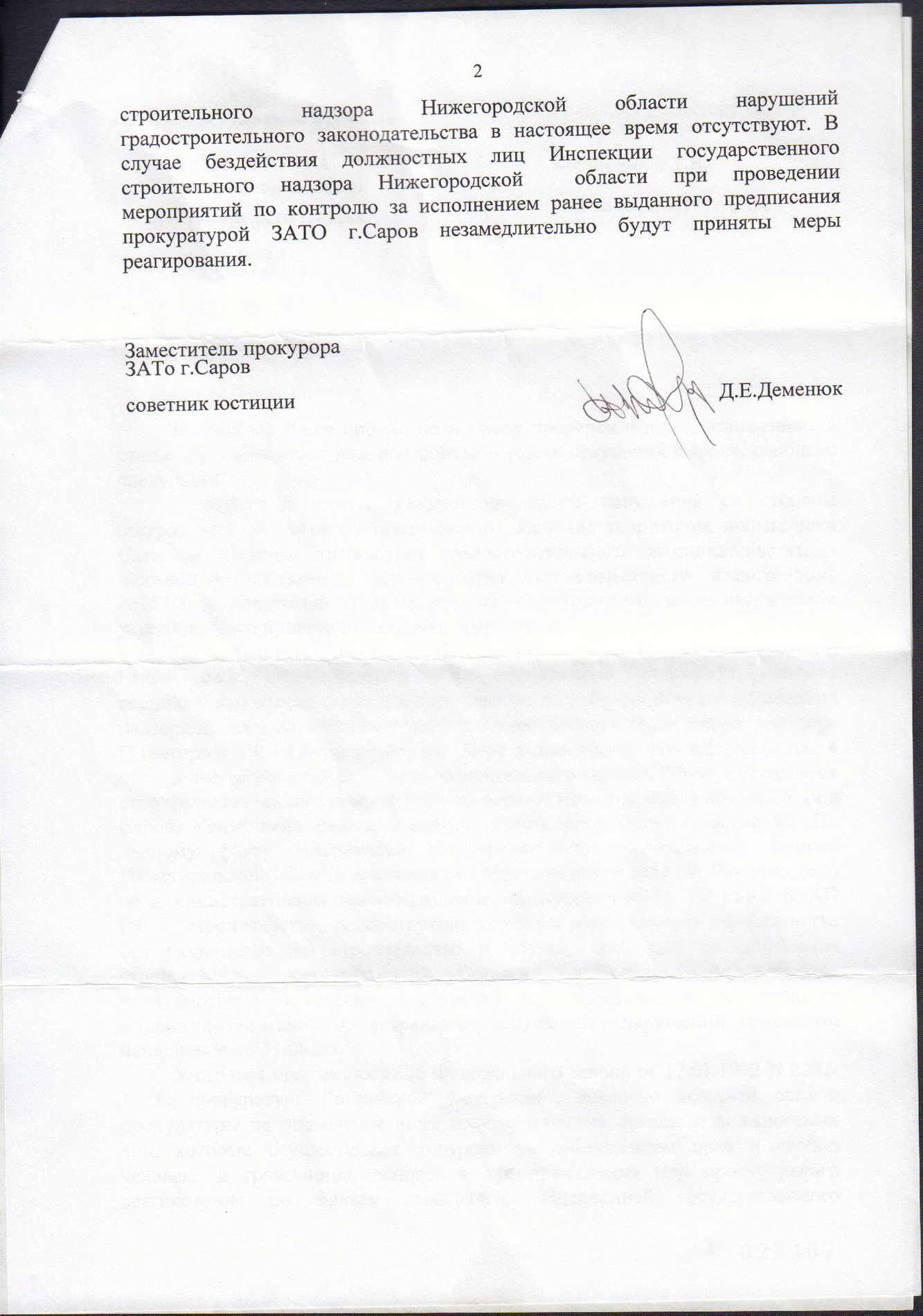 Далее Пётр прислал уже официальный ответ, в котором сообщал, что, как и другие депутаты, информацией о незаконном строительстве не располагает.