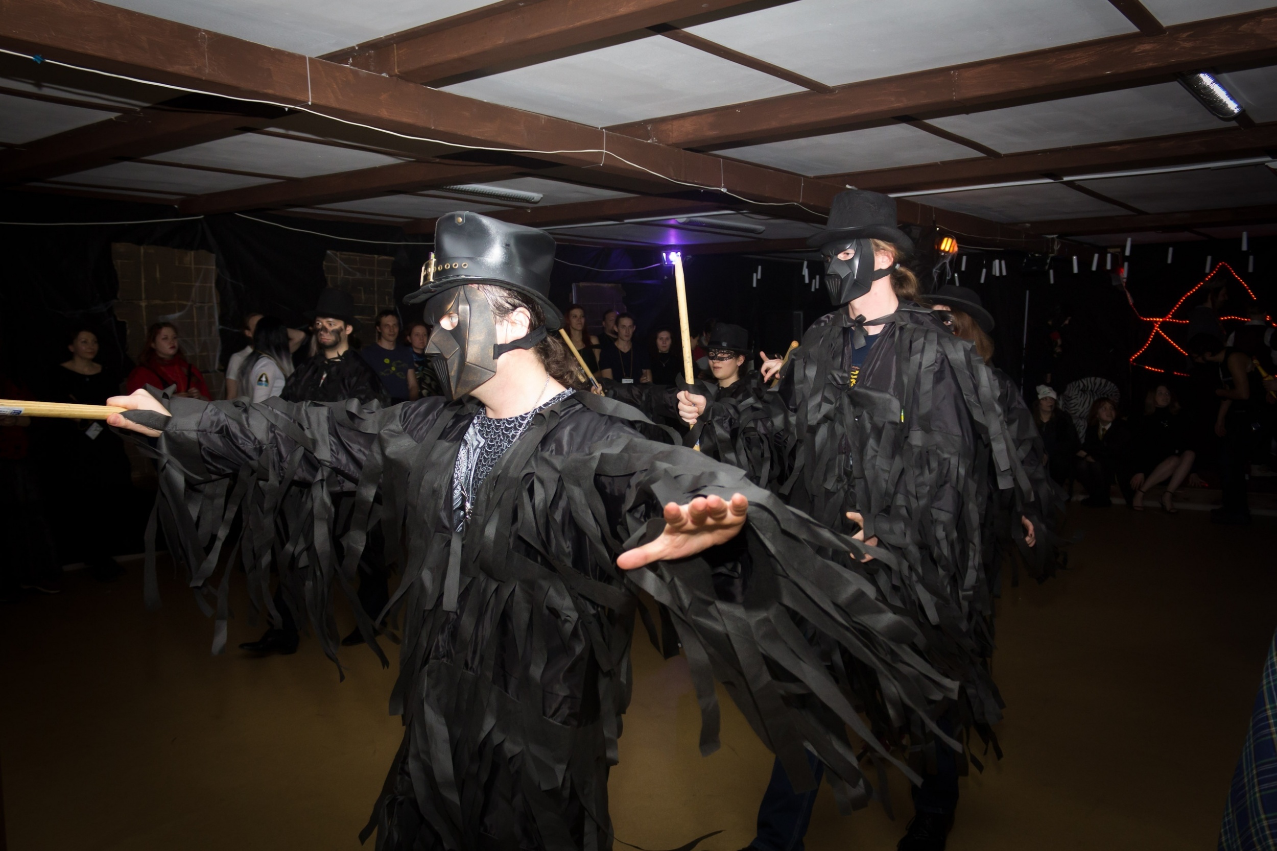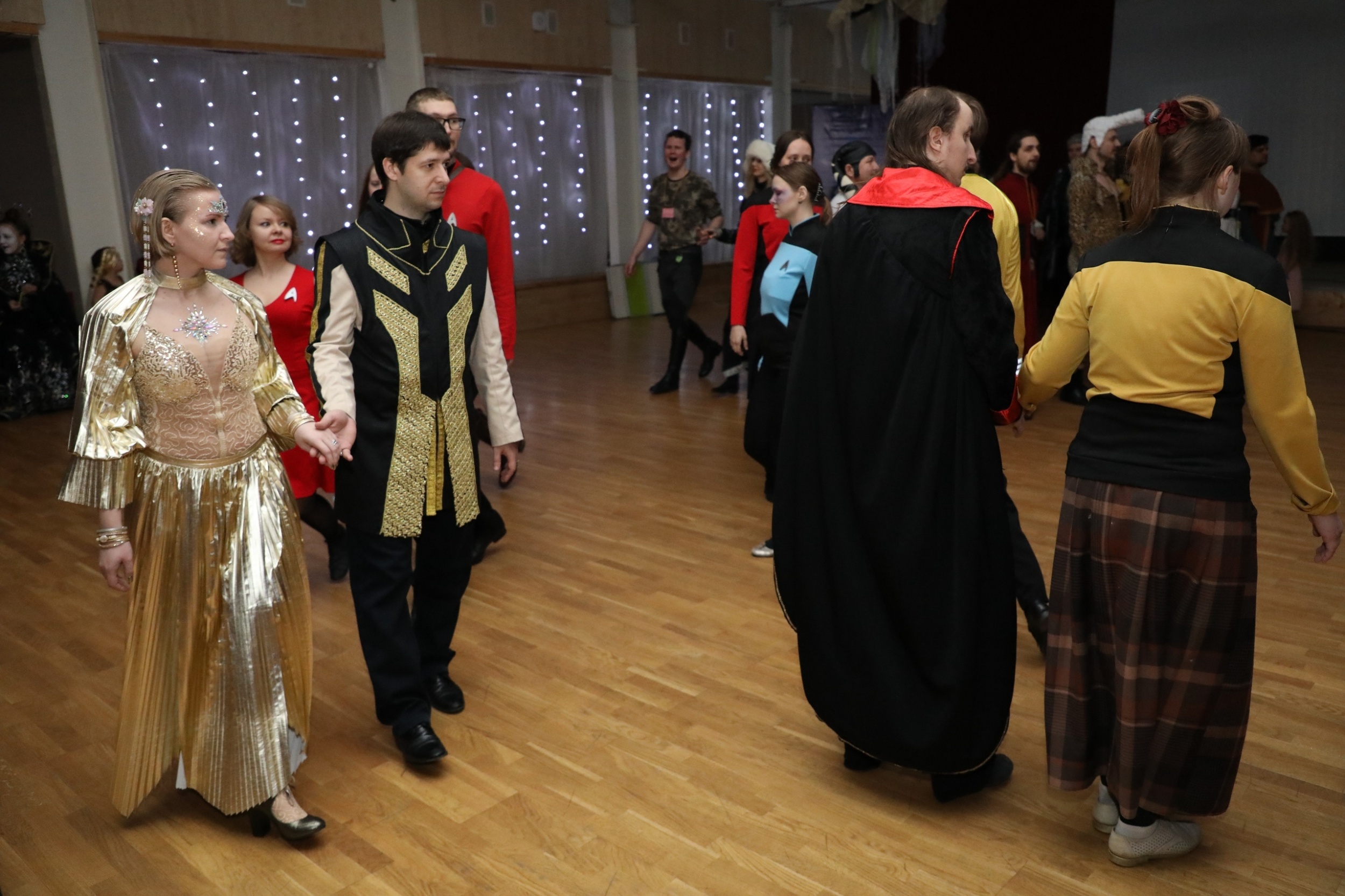 Дальше — «Бал Новой Республики», будь он неладен. Полный провал, к сожалению. Сюжет, костюмы ведущих, работа звукопёров, схемы танцев — всё слито. Контраданс «Веселый парень» наблюдал со стороны и веселился от души, глядя на хаос в обеих колоннах, но потом пошел на испанский вальс и там сам схлопотал по полной. Ушел в расстроенных чувствах в итоге на ярмарку, крафтить пластиковое кольчужное полотно, чем и занимался до ужина.
