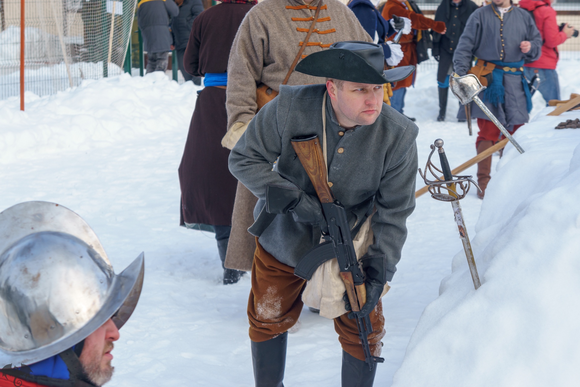 Поспав час после обеда, добрел до викторины про семнадцатый век. ВНЕЗАПНО проявил изрядную эрудицию; когда команда оппонентов была уничтожена с разгромным счетом, организаторы предложили сыграть внутри команды финальную часть. Последним вопросом стало назвать город в Прибалтике, где в семнадцатом веке польская гусария наголову разгромила шведов, а во время Великой Отечественной Войны свершилось одно из гнуснейших преступлений фашистов. Догадка про Саласпилс щелкнула сразу, а тут еще и сокомандница начала тихо напевать про детский пионерский лагерь. В общем, я получил суконную шапку с песцовой опушкой и чарку от пана Лисовского, а мой соперник — принудительное купание в сугробе.