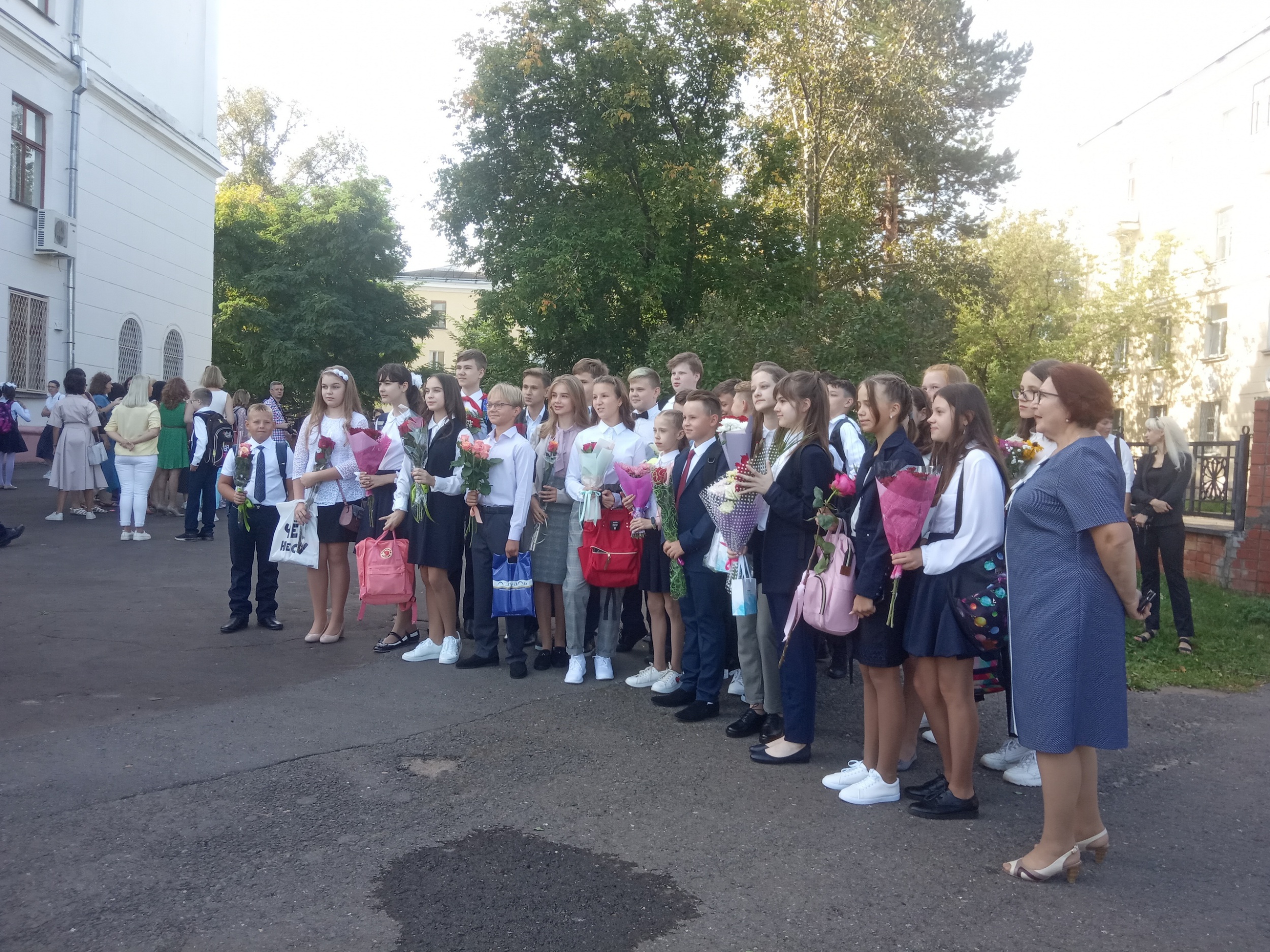 «Это первое сентября — странное. Раньше выступал оркестр, а теперь всё как-то скомкано, хаотично, на скорую руку», — делится со мной мама 11-классницы, стоящая рядом.