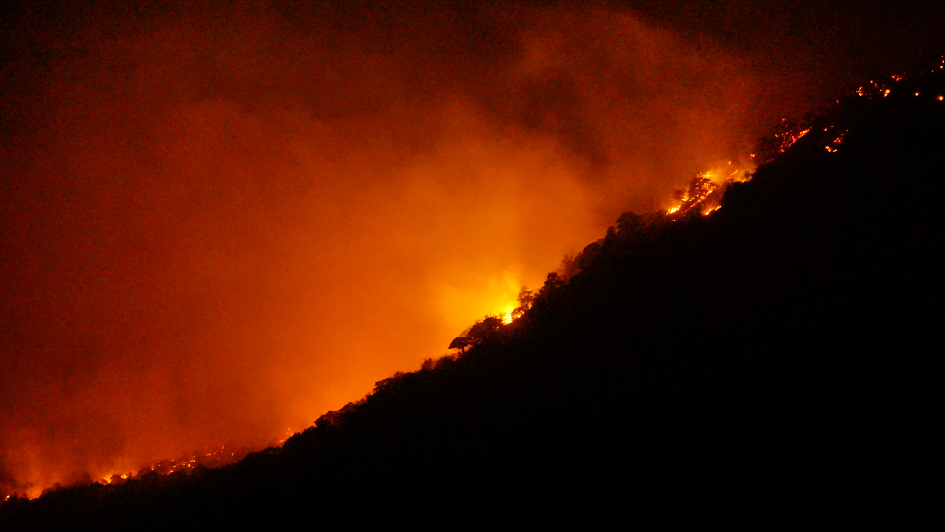 Сначала казалось, что нашим стоянкам в лесу ничего не угрожает. Но когда мы поняли, что огонь подбирается к ним, перетащили все вещи на берег — там камни, гореть нечему. Ещё ребята вытащили своих домашних животных. Мы видели, как разбегаются белки, но наверху наверняка погибло много диких животных, потому что там было адище. Когда ночью мы выбирались с лагун пешком, в какой-то момент открылся вид на гору — это просто Мордор! Гора была охвачена огнём, как огромный факел. Деревья горели, языки пламени вырывались вверх на несколько метров. Кругом всё трещало, камни лопались от температуры.