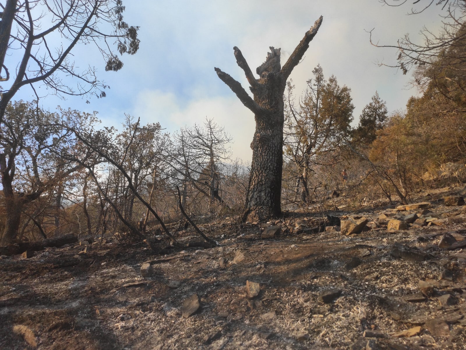 Я приехала сюда в первый раз. Как мне объяснили ребята, которые ездят постоянно, Утриш горит каждый год. Но обычно это локальные возгорания, которые удаётся потушить самим. Когда загорается квадратный метр лесной подстилки, принести из моря ведро воды и вылить несложно. Зачем для этого вызывать пожарных?