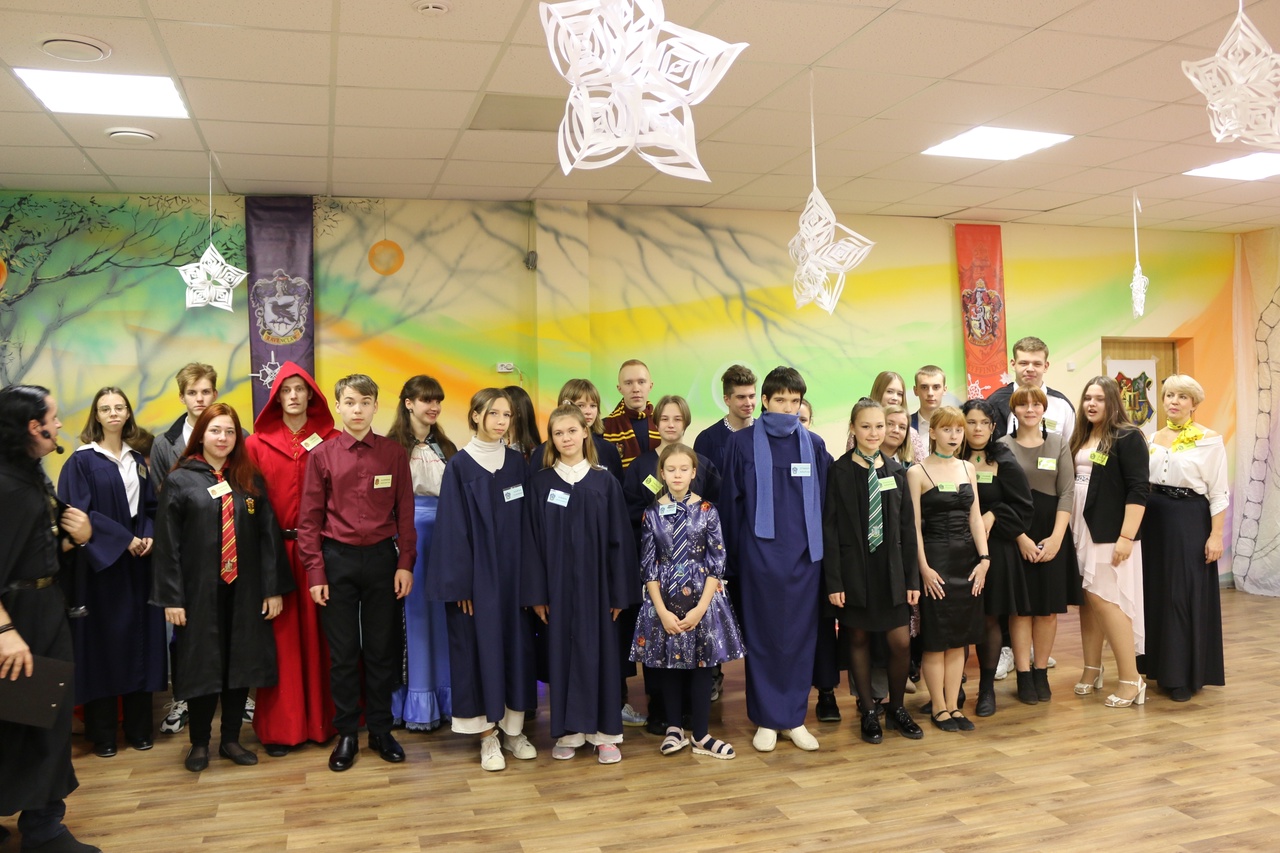 Мне кажется, на наших мероприятиях скучно не бывает, так получилось и в этот раз. У нас был не только антураж, костюмы и танцы, но и интересные конкурсы, и весьма необычный сюжет. Как мы шутили при подготовке: «У нас будет милая рождественская сказка — «Дары смерти!» Мы взяли за время действия события седьмой книги, когда уже Дамблдор мёртв, Поттер в бегах, а Снейп — директор. Конечно, в той вселенной едва ли кто-то реально устроил бы бал в такое время, а если бы и устроили, вряд ли бы там было кому-то весело… Но у нас всему было своё объяснение и на нашем балу, несмотря на сюжет, а может, и благодаря ему, было действительно весело. Когда бы ещё довелось на полном серьёзе надеть куда-то мантию с принадлежностью к факультету Хогвартса и поколдовать волшебной палочкой, да так, чтобы это дало какой-то эффект? А также примерить роль дементора и попугать народ.