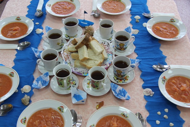 Чаще всего, нам всё-таки приходилось помогать поварам резать салаты, но мы это делали уже по доброй воле. У нас всё равно оставалось прилично времени между сервировкой столов и моментом, когда нужно начинать носиться раздавать всем горячее. Как было бы удобно всё спокойненько накрыть, когда никого нет, и сидеть есть вместе со всеми, а не бегать с тележкой между столами под ропот голодных детей. Но, увы. Холодную еду есть никто не будет, поэтому начинать накрывать можно было только за 10 минут до прихода детей. Конечно же, невозможно за это время накрыть на двести человек (как минимум раздача так быстро работать неспособна), поэтому детям приходилось ждать, а нам бегать.
