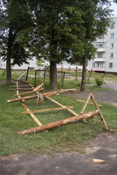 «Так-с, приехала машина со стройматериалами, женщины с детьми устраивают демонстрацию и не дают выгружать… ХЕЛП!!! Аааа, липки собираются пилить… Единственная зелень в окрестности. И будет пивнуха в 3 метрах от жилого дома».(см. материал «Магазин нам здесь не нужен», в № 20, от 15.05.03).