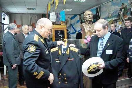 С радостью встретил адмирала Темников. Замечательная экскурсия по музею, концерт учащихся кадетского класса Темниковской средней школы им. Ушакова, фуршет, устроенный темниковским Морским собранием, были завершены торжественной передачей музею полного комплекта парадной формы контр-адмирала ВМФ России. Люди, имевшие отношение к военной службе, могут представить восторг директора музея, получившего редкий и дорогой экспонат.