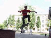 — Часто бывает. Как-то раз нас бабулька луком гоняла… А один раз мы катались возле «красного дома», под башней. Выскочил мужик, охранник. Схватил у одного из парней скейт и пошел. А один из наших подкрался к нему сзади, выхватил скейт и — дёру!