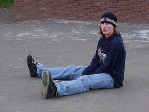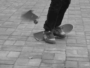 — Есть скейтерская одежда, фирменная: толстовки, шапки, специальная обувь. Если есть деньги — покупаешь. Стоит это дорого. В общем-то, специальная одежда — это не принципиально. Вот обувь — да! В ваших кроссовках (с сомнением оглядывает мои самые обычные тоненькие кроссовки) я бы покатался максимум неделю. Такие быстро порвутся. Когда прыгаешь, ногу ведешь вперед. Страдает боковая часть кроссовок — рвется. Обычные кроссовки жесткие, если прыгаешь откуда-то с высоты — отбиваешь ногу. Скейтерские кроссовки толстые и прочные. В них, правда, тоже ногу отбиваешь, но не так сильно. А в толстовках и джинсах можно и обычных кататься.