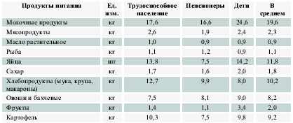 Попробуем рассчитать стоимость сегодняшней потребительской корзины и корзины образца прошлого века в действующих ценах. Сделать это непросто. В число молочных продуктов, например, входят молоко, творог, сыр и др., сильно различающиеся по ценам и объемам потребления. Отдел потребительского рынка городской администрации рассчитывает стоимость корзины по довольно сложной методике. Но нас интересуют не столько абсолютные цены на продукты питания, сколько возможность сравнения стоимости потребительских корзин.