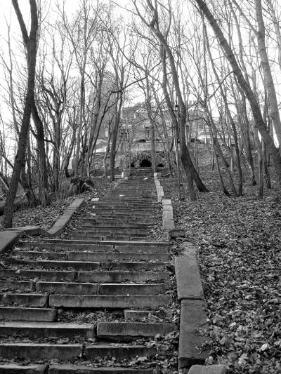 Через кованую решетку за нами наблюдает женщина в сером платье. Ощущения неприятные.