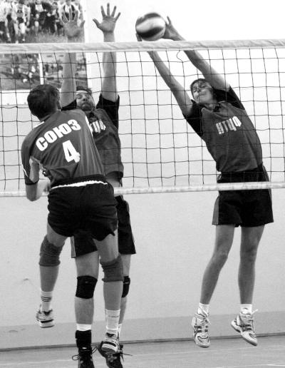 После поднятия флага пятьдесят два спортсмена рассредоточились по залам. Двенадцать человек дружно стучали шашками, в малом зале две команды бились за звание лучшего в настольном теннисе, а наверху сражались сильнейшие футболисты, которых затем сменили не менее «звездные» волейболисты, оказавшиеся такими жадными до игры, что провели не три, а четыре партии.