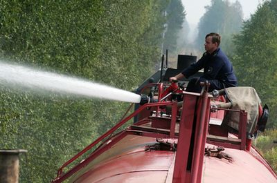 — Мы отсутствовали всего полтора часа, — рассказывает машинист с тридцатитрехлетним стажем Геннадий Алексеевич Петрушков. — Когда вернулись, а была уже ночь, огонь с ревом и треском шел в направлении первого КПП. Бороться с ним было невозможно. Нашей задачей было перекрыть ему дорогу и не допустить распространение огня в город. Но тут неожиданно пожар резко развернулся и направился в противоположную сторону. За всю свою жизнь не видел ничего подобного. Лоскуты огня, отделяясь от большого костра, как шаровые молнии, кружили в воздухе, а потом перебрасывались на деревья, словно выбирая жертву. И тут я поверил, что огонь — живая субстанция.