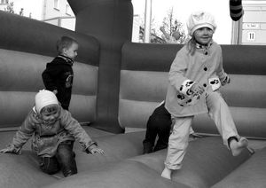 Выбор площадки оказался очень удачным. Уже давно канули в Лету праздники на площади, которые славились своим размахом и весельем. Для жителей старой части города мероприятие стало настоящим подарком, да и молодежи из нового района было немало. Пока на импровизированной сцене зрителей развлекал эстрадно-джазовый оркестр под руководством В. Маркова, желающие могли покататься вместе с детьми на паровозике или попрыгать на надувном батуте. Рядом проходили шахматно-шашечные турниры, конкурсы и игры для детей. Ну, а если кто-то успел проголодаться, то к их услугам работал буфет со свежей выпечкой, чаем и сладостями. Особенно детворе понравился конкурс рисунка на асфальте. В изобразительный процесс включились и взрослые, и в скором времени вся территория перед Домом культуры пестрела от разноцветных мелков. Даже наступление сумерек не беспокоило собравшихся, площадка перед ДК освещалась фонарями, поэтому ни что не мешало наслаждаться праздником до ночи.