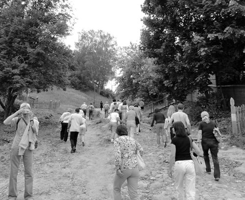 Большим сюрпризом стало восхождение на Соборную гору. 54 метра над уровнем Волги напомнили мне Новоафонский монастырь в Абхазии, путь к которому пролегал по так называемой «аллее грешников». Памятуя об этом, я предусмотрительно сняла туфли на каблуках, и взойти на крутую возвышенность по земляной тропинке оказалось не столь тяжким испытанием. От раскинувшихся вокруг красот захватывало дух. По склонам холмов — разноцветные домики с красными, зелеными и серыми крышами, старинная деревянная церковь, одиноко прислонившаяся к опушке леса, противоположный берег Волги…