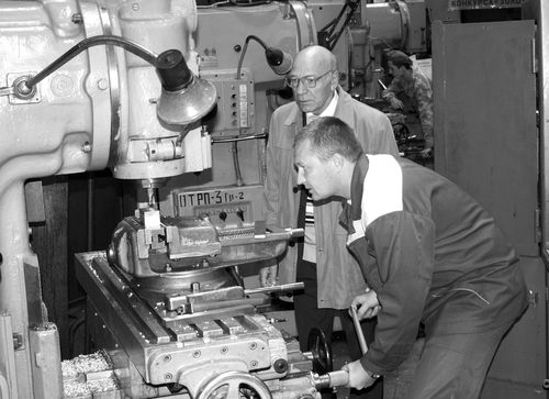 В 8 часов утра все участники собрались в инструментальном цехе, где их поздравил с началом конкурса директор завода Александр Георгиевич Потапов.