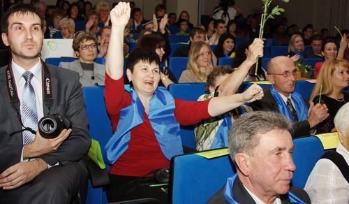 Инженер-исследователь КБ-2 Елена Парфенова устроила на сцене мини-перфоманс. Пересыпая разноцветные камешки из бокалов и смешивая их друг с другом, девушка рассказала о себе, своих увлечениях и назвала это все «Краски моей жизни». Больше всех Лена удивила своего сына, устроив ему поздравление прямо на сцене — Диме в этот день исполнилось пять лет. Вряд ли к мальчику когда-нибудь придет такое число гостей!