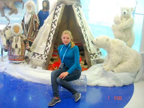 Впереди последовательно расположились стенды разных регионов: Нижегородской, Владимирской, Костромской областей, Красноярского края, Республики Саха. Север заинтересовал меня больше всего. Там были настоящие юрты и фигуры белых медведей. Представители Якутии даже выдавали посетителям стилизованный паспорт, который выглядел, как настоящий.