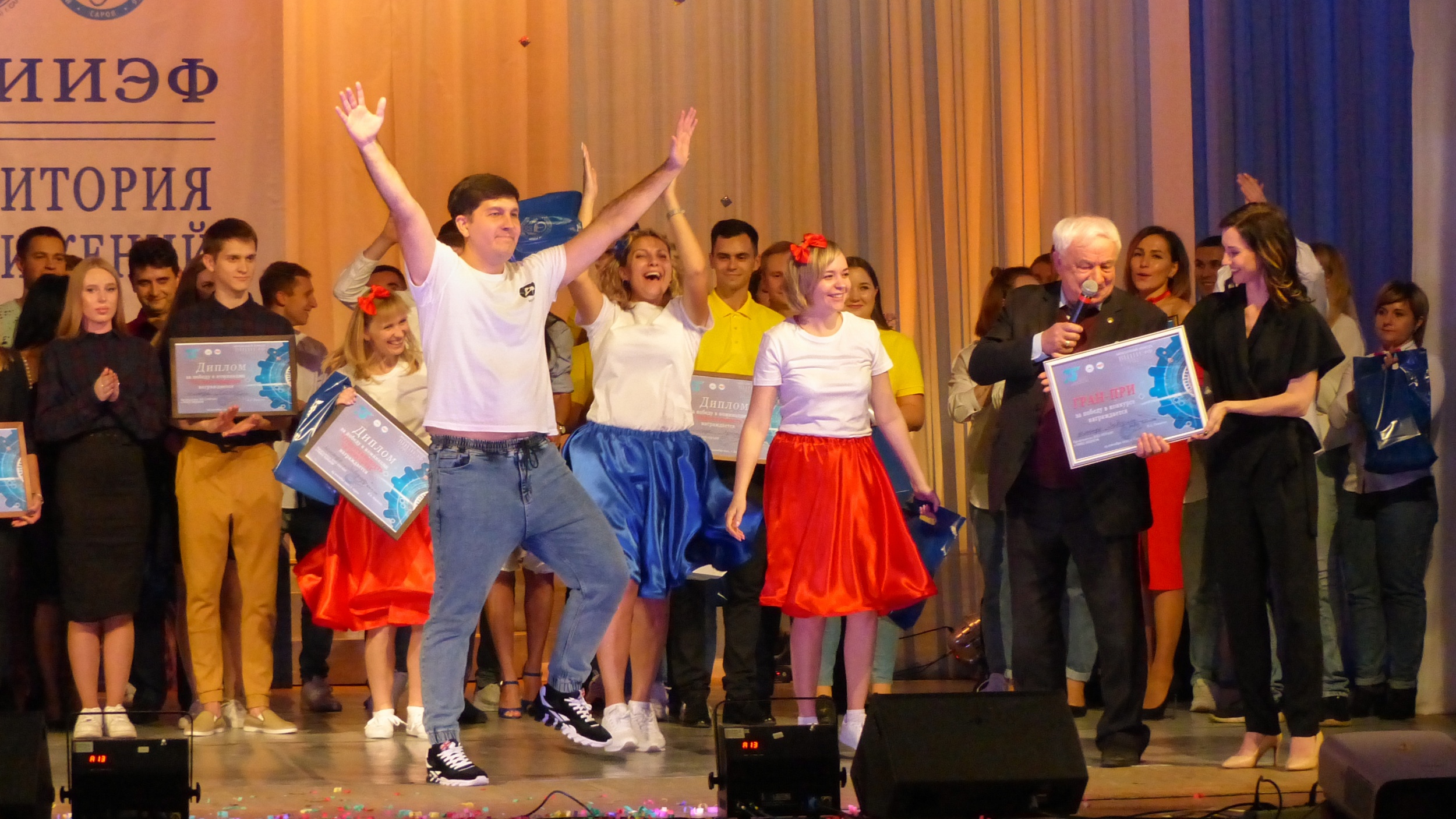 Команды представили визитки и музыкальные номера. Зрители погрузились в славную историю Ядерного центра и профсоюзной организации. Выступления были яркими и сильными. Каждая команда нашла свой стиль. К примеру, команда «Авангард» представила в музыкальном конкурсе световое шоу, а команда «СМУЗИ» рассказала о роли лазерных установок в мировой политике да так, что зал рыдал от смеха. Зажигательный рок-н-ролл показали «Заводилы», а медики из «Классной зоны» выпустили на сцену «Лаврентия Берию».