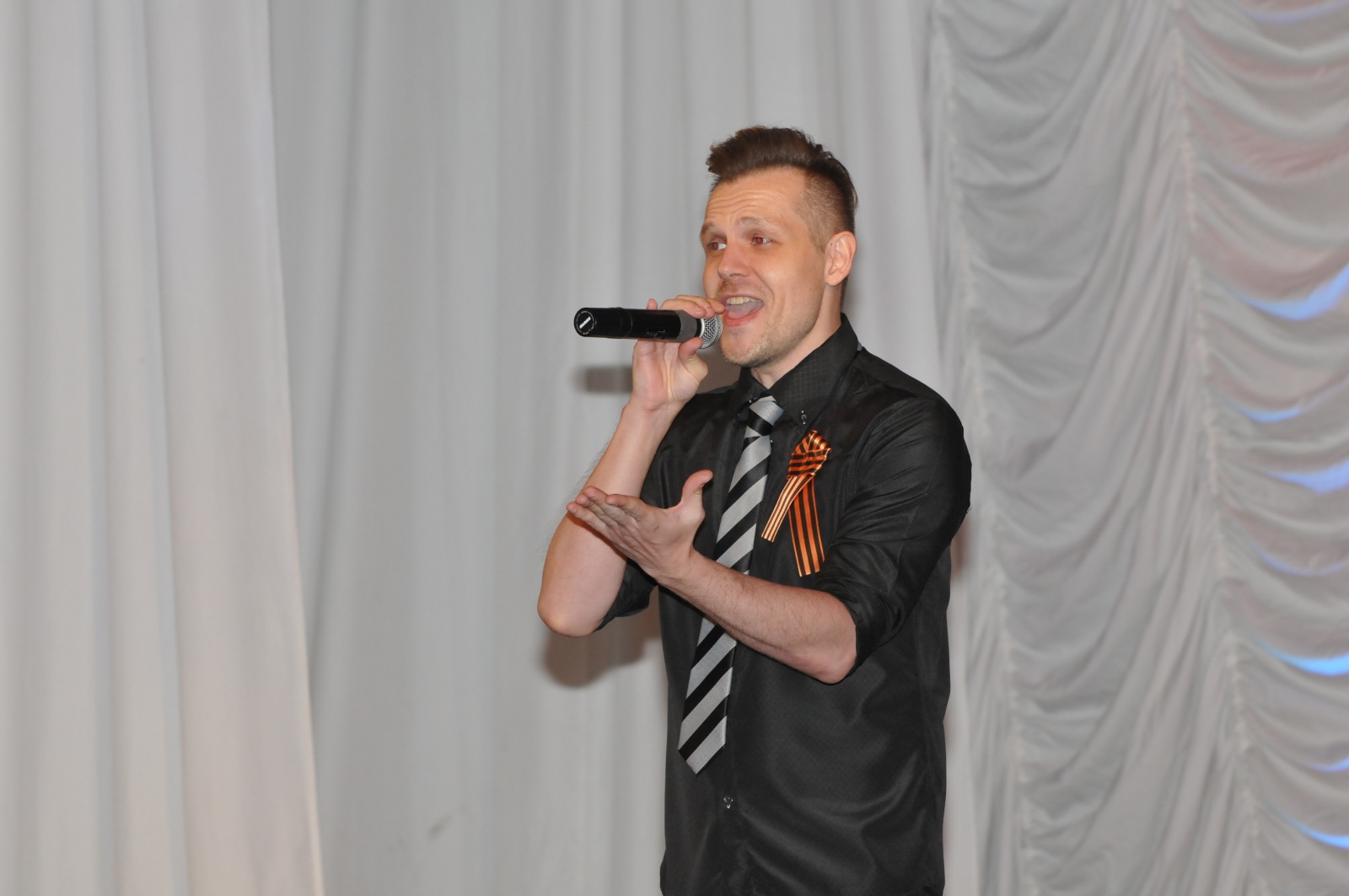 В программу концерта, подготовленного силами солистов и самодеятельных коллективов Ядерного центра, вошли любимые песни военных и послевоенных лет. На сцену выходили артисты, которых публика хорошо знает и ценит за талант и исполнительское мастерство: блестящие солисты Е. Ларин и Е. Сибгатуллина, мастера сцены А.Королёв. А. Комаров, И. Бадя, А. Рахтов, трогательная А. Осипова и невероятно харизматичная С. Магалинская… Были танцы в исполнении артистов студии «ДеКа» (рук.Д.Брагин и Е. Сысоева) и коллектива «Аллегро» (рук. А. Козловская). Стихи о войне читали Д. Чипегин, Н. Гурова, Л. Шадрина… Двадцать семь прекрасных продуманных номеров, исполненных настолько искренне и пронзительно, что зрители порой не могли сдержать слез. Завершился концерт общим исполнением великой песни «Этот День Победы…».
