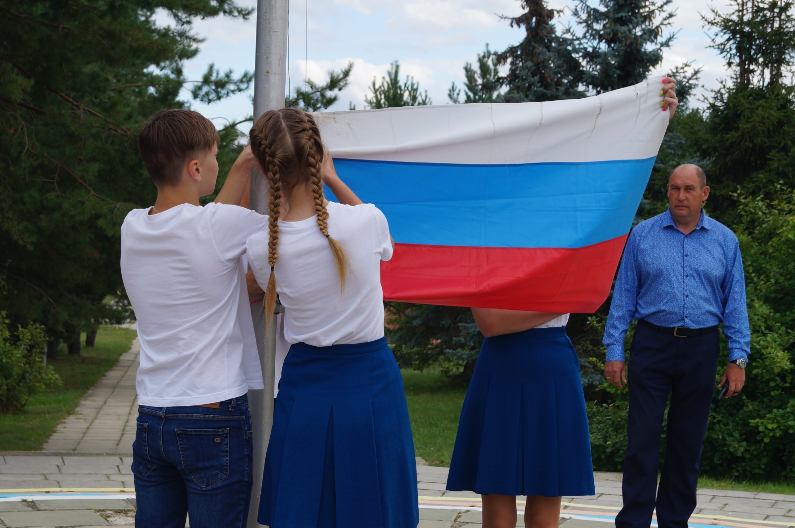 24 августа церемония открытия началась с фотографирования участников слета и парада. Честь поднять флаги — страны, РПРАЭП и профсоюзной организации РФЯЦ-ВНИИЭФ — над лагерем им. А.П.Гайдара обычно выпадает капитану команды, одержавшей победу в прошлом году. Но в юбилейный год право поднять флаги было передано экс-председателю Комиссии по работе с молодежью профкома Института Екатерине Косицыной. Именно она и ее состав «молодежки» придумал и провел в 2009 году первый слет, в котором приняли участие пять команд.