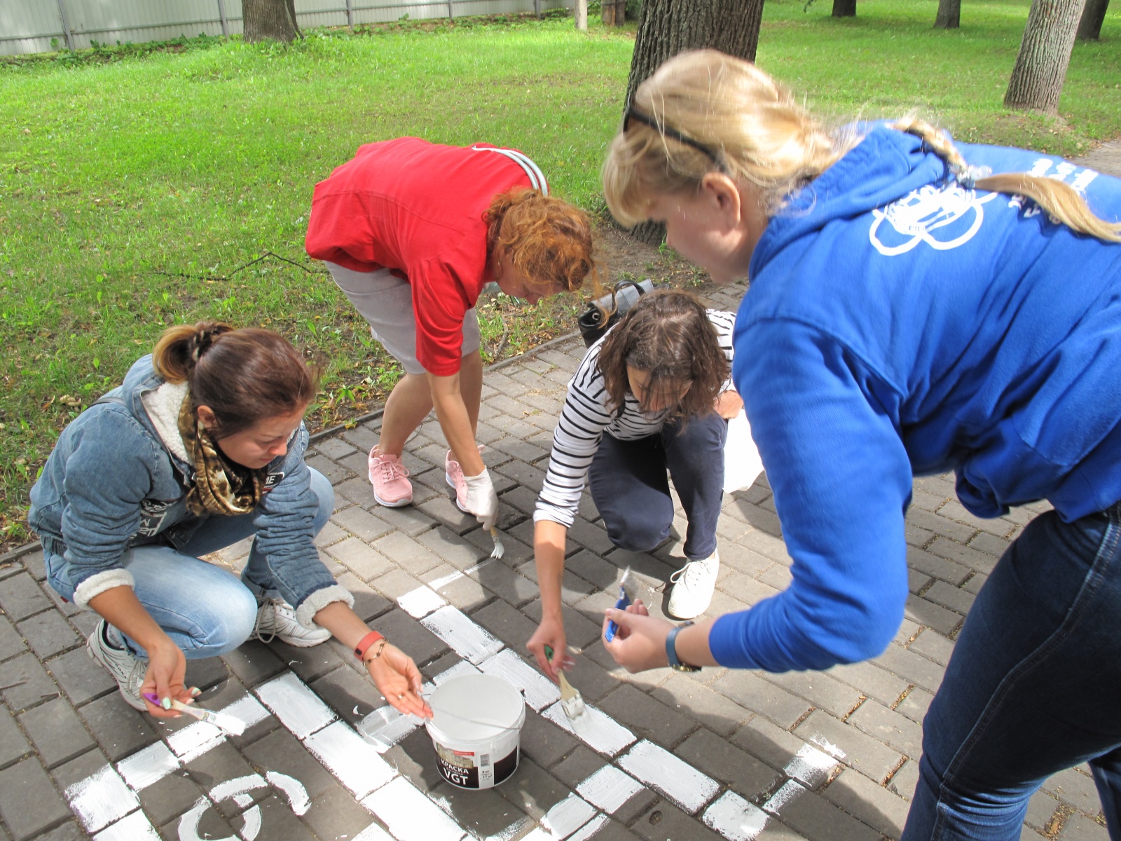 Рядом с улицей Рублева находится небольшой сквер. Сюда приходят родители с детьми и подростки. Силами участников автопробега и городецких общественников были изготовлены три доски для игры в шашки и шахматы, которые прикрепили прямо на скамейки в сквере. А на дорожной плитке нарисовали сетку для игры в «классики» и «змейку». Краска едва успела высохнуть, как тут же нашлись желающие попрыгать. А на досках вместо шашек появились обычные камушки и первые игроки. На следующий день городецкие друзья прислали в Саров «шпионские» фотки, как востребованы оказались нехитрые, на первый взгляд, развлечения в сквере.