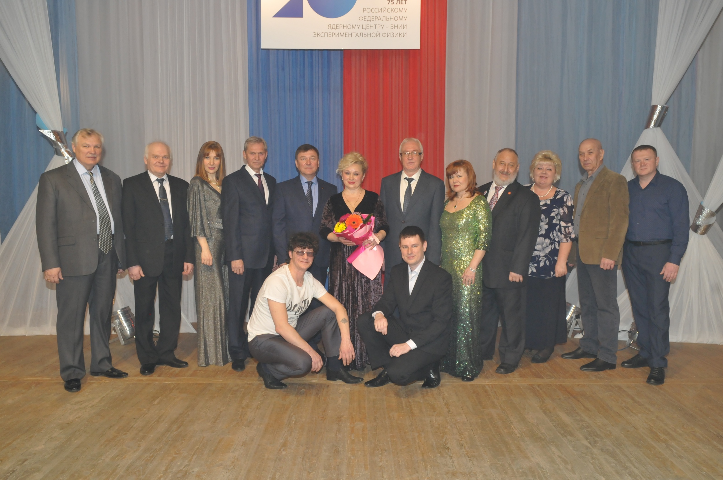 Ветеранов и работников РФЯЦ-ВНИИЭФ с 75-летием ядерного центра поздравил зам. председателя профкома РФЯЦ-ВНИИЭФ Сергей Валентинович Козинцев. Он пожелал здоровья, удачи, благополучия и отметил, что именно с этого концерта начинается череда праздничных торжеств, посвящённых юбилею Ядерного центра.
