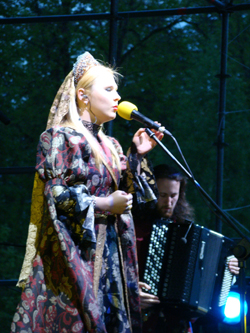 С пяти часов на большой сцене на проспекте Музрукова в режиме нон-стоп шли концерты. Песни военных лет исполняли нижегородские актеры театра «Zоопарк» и группа «ТриА», передавшие эстафету Нижегородскому государственному русскому народному оркестру и его солистам Василию Овсянникову, Ульяне Старковой и Светлане Кузнецовой. А после них на сцену вышла Пелагея, очарованная Саровом («Я позавидовала людям, живущим в этом замечательном городе»), и очаровавшая зрителей своей манерой пения, экспрессией, проникновенностью и искренностью.