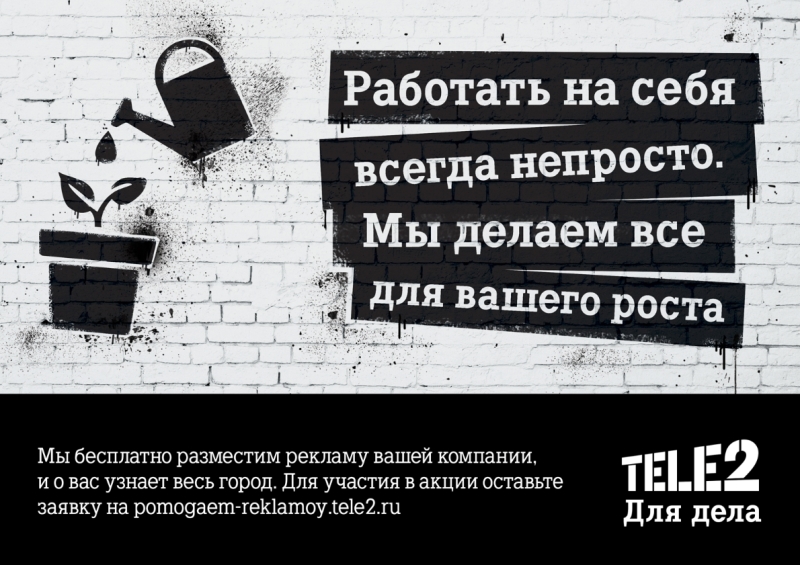 Tele2, альтернативный оператор мобильной связи, объявляет о старте необычной маркетинговой программы поддержки малых предпринимателей. На этот раз компания не просто предоставит им выгодную связь, но и поможет рассказать о своем деле. Tele2 бесплатно создаст и разместит рекламу товаров и услуг своих бизнес-клиентов, чтобы стимулировать развитие их предприятий.