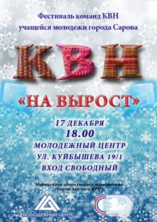 17 декабря на сцене Молодежного центра пройдет фестиваль команд КВН учащейся молодежи Сарова «На вырост».