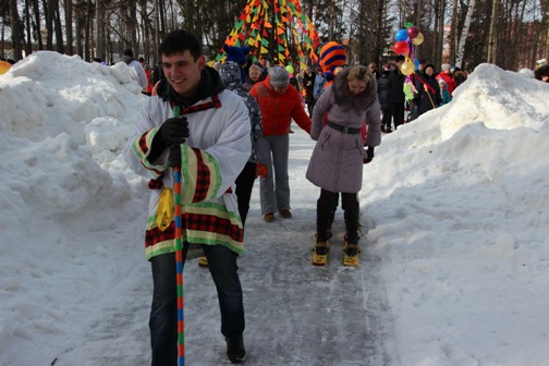 На аллеях парка студенты СарФТИ помогали делать весенние цветы и чучелки, угощали горячими блинами, проводили шуточные конкурсы. Возле сцены постоянно хороводились любители русских песен и народных обрядов. Малыши покоряли снежные горы, а самые сильные и ловкие парни пытались забраться на столб. Общую атмосферу праздника поддерживали выступающие творческие коллективы и многочисленные продавцы пирогов и шашлыков.