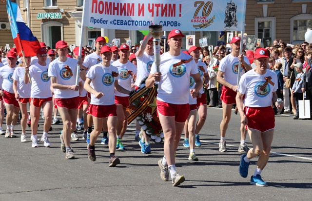 Важным моментом стала символическая передача капсулы с землей Сапун-горы, которую из Севастополя принесли участники легкоатлетического пробега. 1450 км преодолели 43 человека во главе с Вячеславом Линником. И на митинге в День Победы Вячеслав Михайлович вручил исторический подарок руководителю военно-патриотического клуба «Мужество» Павлу Новаеву на вечное хранение в музее.