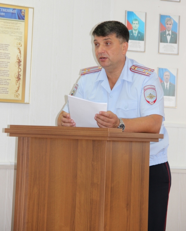 С докладом об основных показателях работы стражей порядка выступил начальник МУ полковник полиции Виктор Иванов. Он пояснил, что «по итогам 6 месяцев 2015 года общее количество зарегистрированных преступлений осталось на уровне прошлого года и составило 278 преступлений, 215 из которых раскрыто».