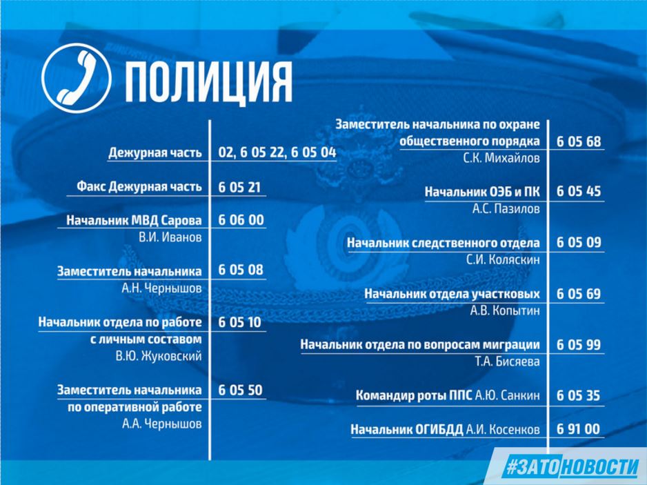 Изменился телефон дежурной части УВД Сарова