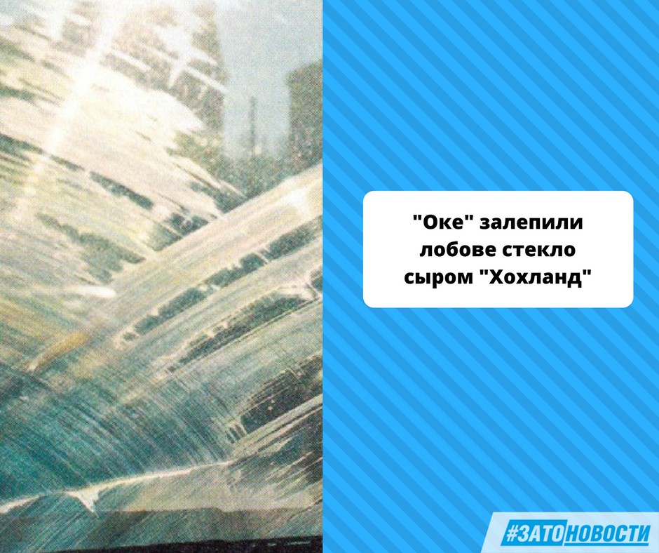 И ведь правда! Кто-то не поскупился на упаковку «Хохланда» (ну, знаете, такую порционную) и этими самыми квадратиками лобовуху аккуратно оклеил. Я так понимаю, сделано это для того, чтобы привлечь дикую фауну, которая самобеглую повозку покроет продуктами своей, фауны, жизнедеятельности.