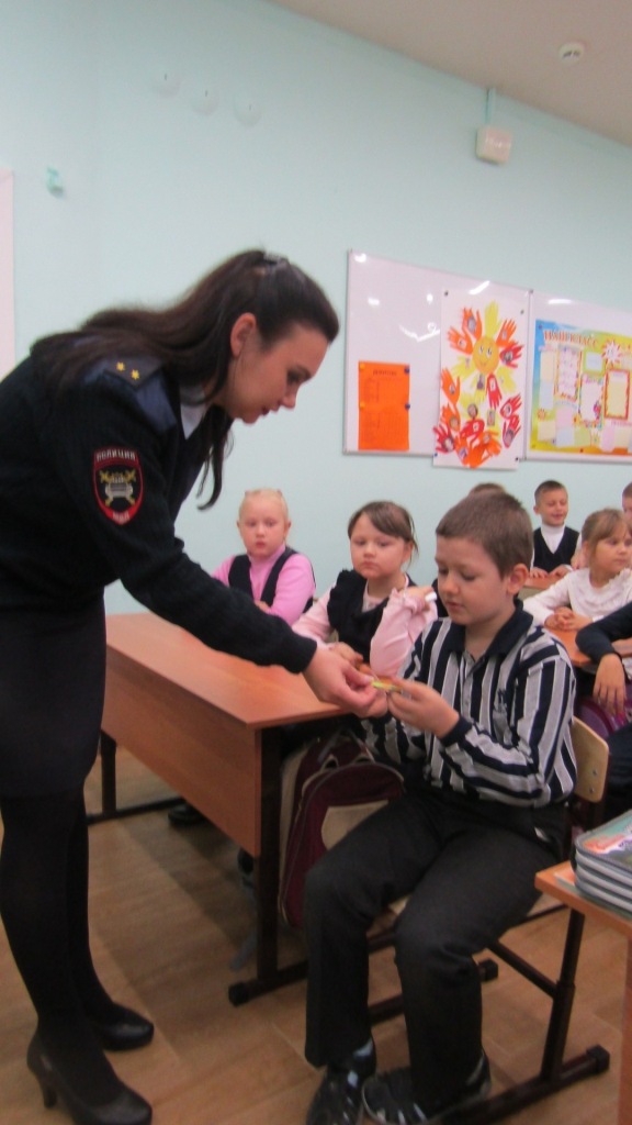 Так же инспектор по пропаганде затронула тему использования световозвращающих элементов (фликеров), рассказав первоклассникам об их преимуществах.