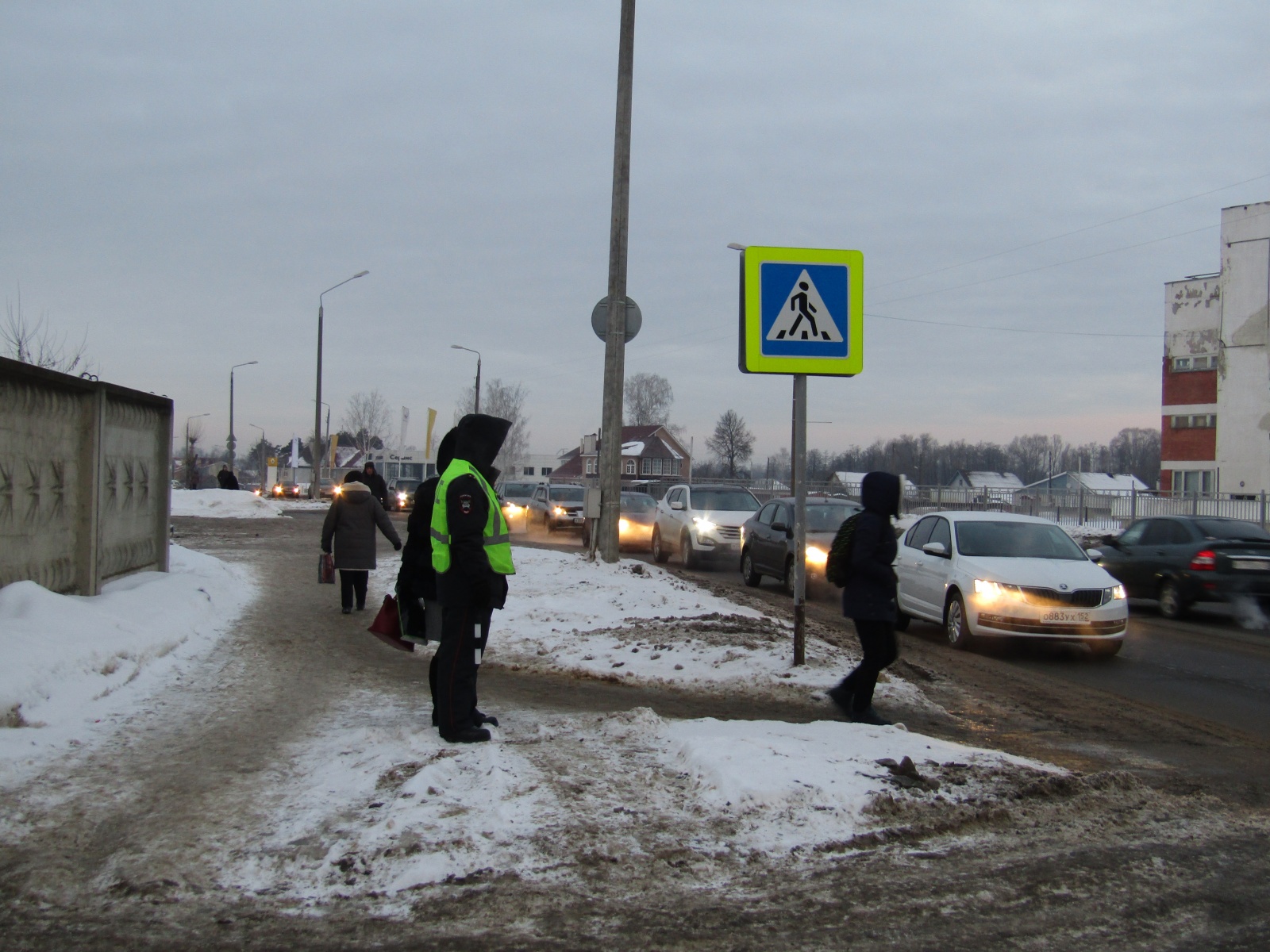 Стражи дорог и «Родительский педагогический патруль» несли службу вблизи нерегулируемого пешеходного перехода около Саровского политехнического техникума.