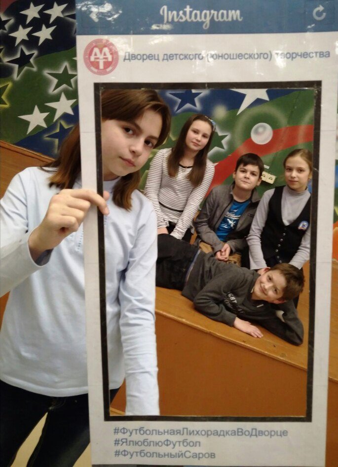 Дворцовцы отвечали на вопросы о футболе, набивали мяч, вспоминали эмблемы известных клубов и их названия, называли города — организаторы ЧМ-2018, делали футбольное селфи.