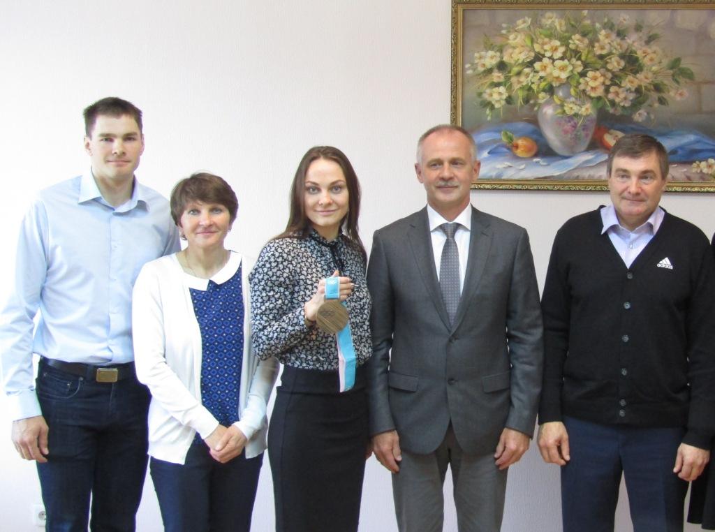 Торжественный прием бронзового призера олимпийских игр 2018 года в лыжной эстафете Анастасии Седовой провел 27 апреля глава администрации Сарова Алексей Голубев.