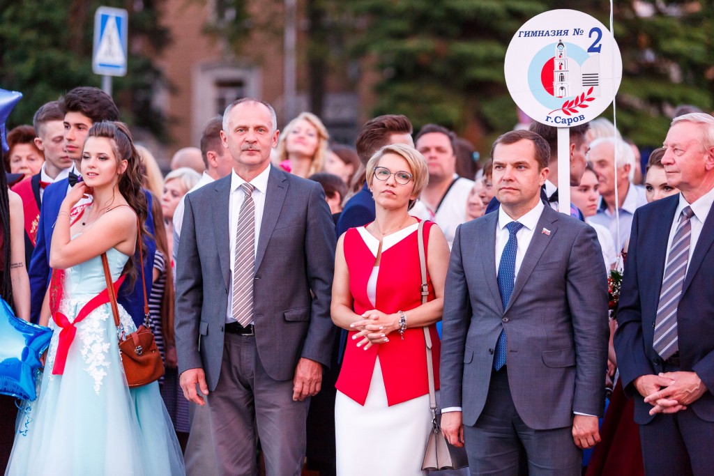 Городской вечер выпускников состоялся на площади Ленина 29 июня. В этом году со сцены 486 юношей и девушек приветствовали три доктора наук: глава администрации Сарова Алексей Голубев, директор департамента образования Наталия Володько и научный руководитель РФЯЦ-ВНИИЭФ Вячеслав Соловьев. Также к поздравлениям присоединился и.о.главы города Сергей Жижин.