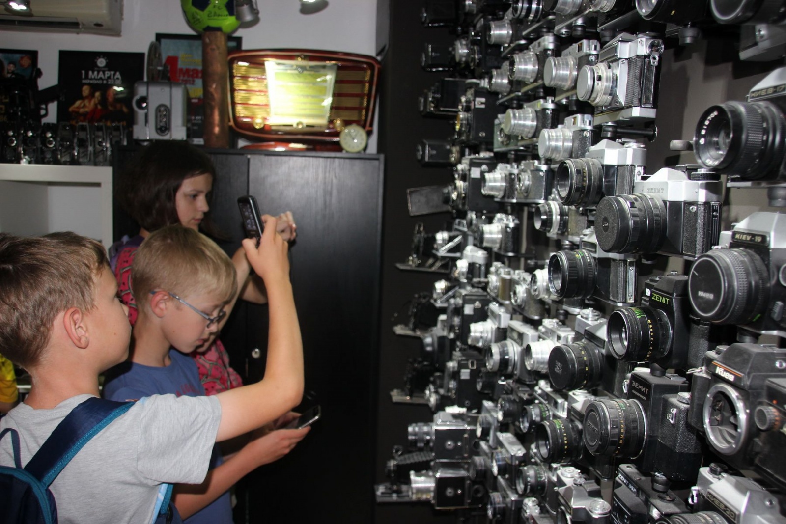 Логичным продолжением экскурсии стало посещение группы компаний «2 Аякса». И здесь в роли проводника по офисному лабиринту выступил Сергей Кугукин, редактор, журналист и депутат городской думы. Очень доходчиво, с неожиданными поворотами в повествовании, с вопросами-загадками он сумел представить работу рекламного агентства, в котором есть редакция радио, мини-типография, дизайн-бюро и другие творческие направления. Понравилась ребятам и коллекция советских фотоаппаратов, собранная генеральным директором компании Артемом Мочаловым. А особенно запомнился телефон, по которому звонили из специальных подземных бункеров.