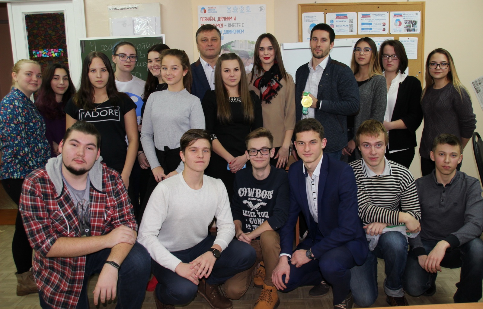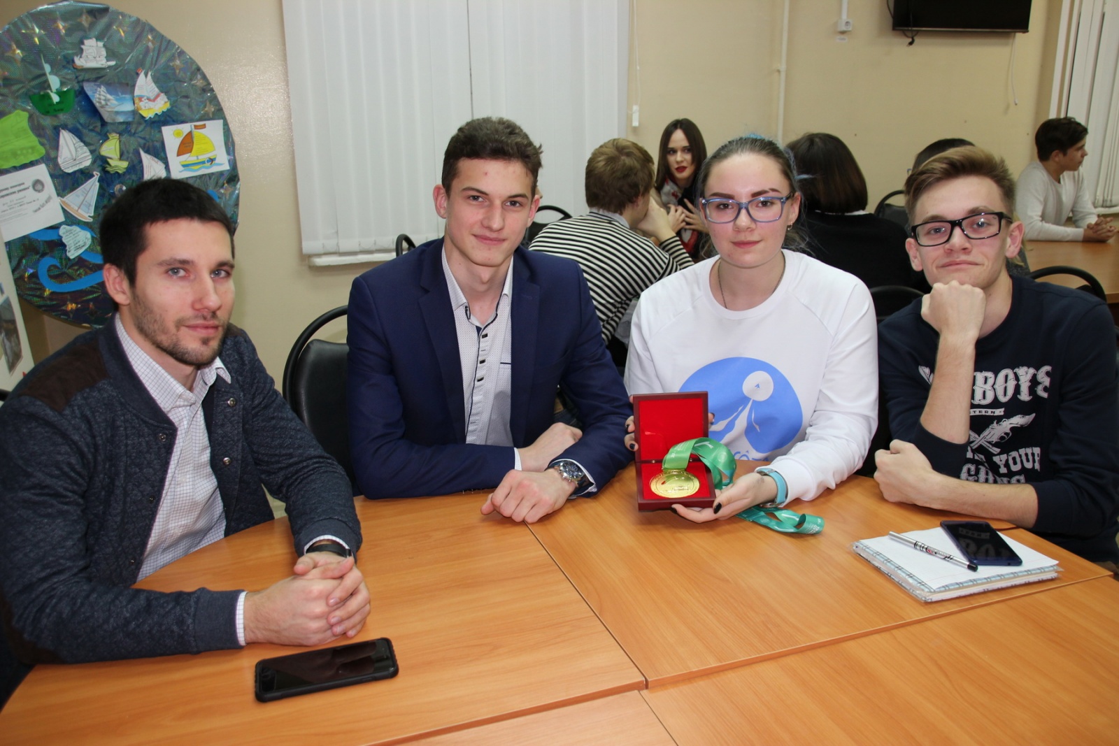 Считается, что чувство юмора, сообразительность и быстрота реакции есть у каждого харизматика. А что еще? Разговор начался с обсуждения качеств, присущих людям, которые способны привлечь внимание и повести за собой. По ходу занятия у каждого была возможность задать любой вопрос гостям и получить честный, искренний ответ. А еще можно было подержать в руках «почти теплую» золотую медаль чемпионата мира, узнать способы мотивации и секреты тренировки.