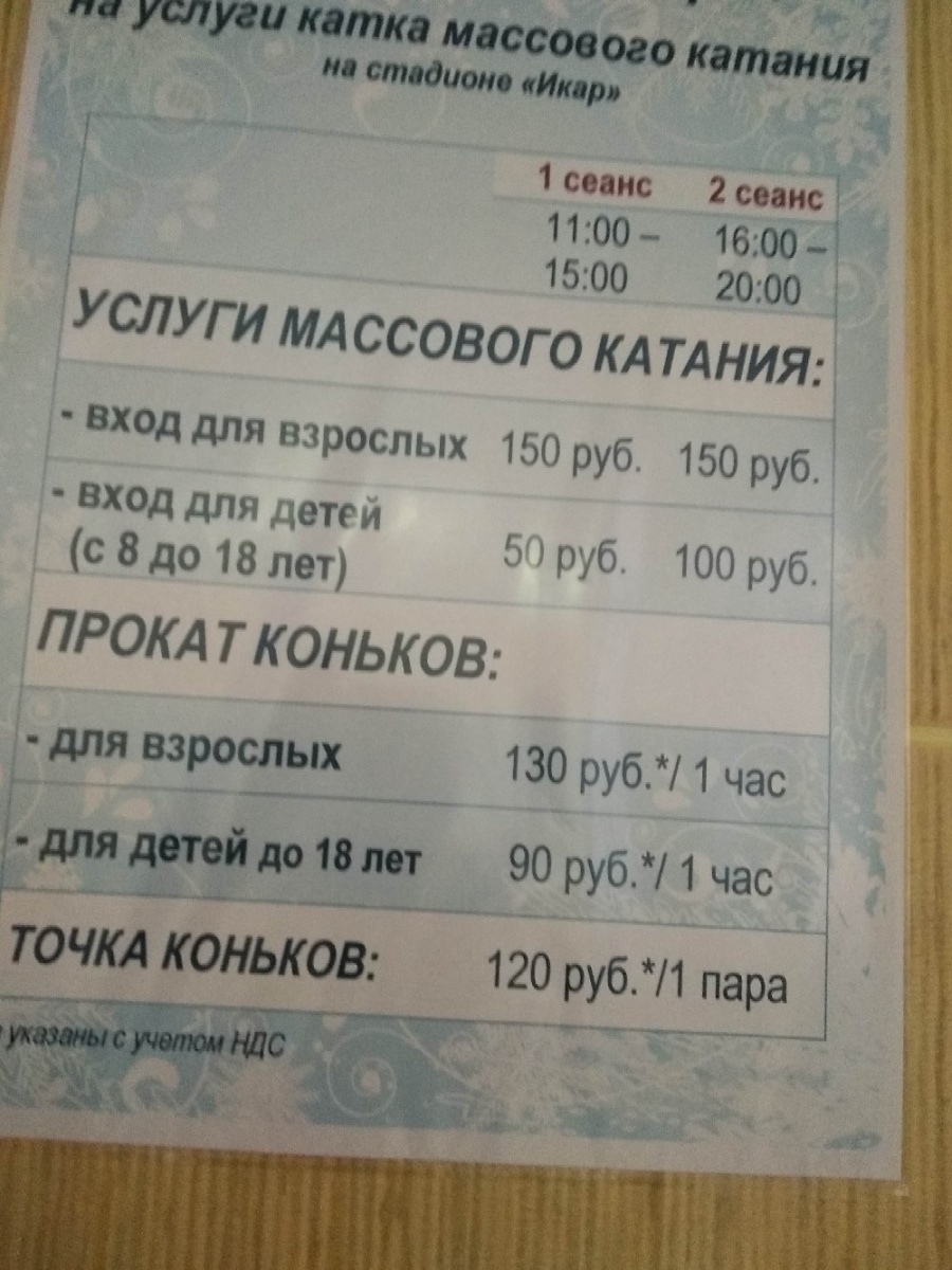 В выходные и праздничные дни каток «Икар» будет открыт с 11.00 до 15.00 и с 16.00 до 20.00.