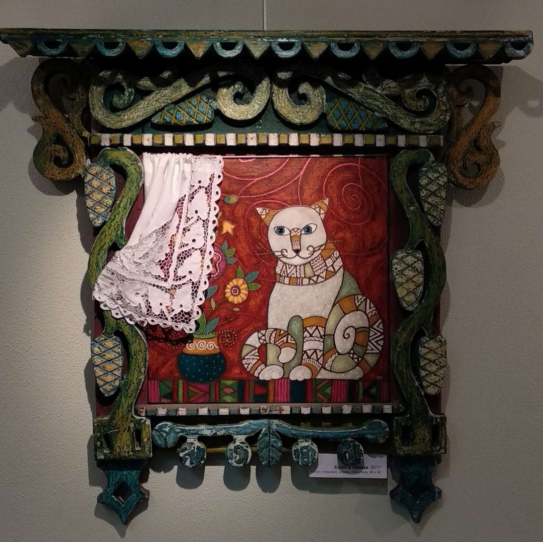 Этнические сюжеты, духовная тема и котики — все это есть в работах Марины Поляковой. Выставка продлится до конца января следующего года.