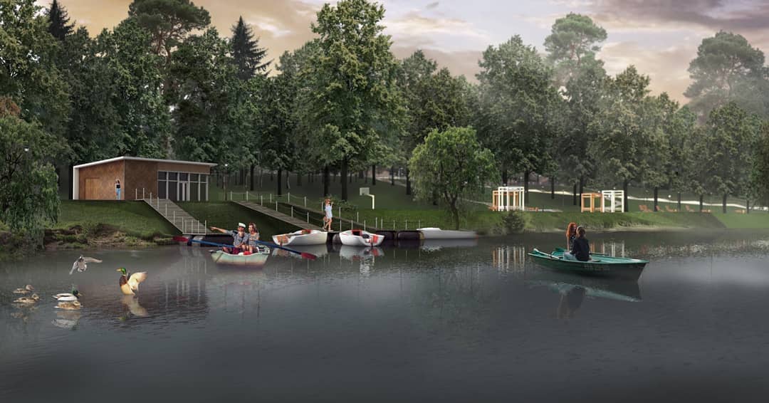 Проектом предусмотрено создание набережной с лодочной станцией, местами для отдыха, спортивными и многофункциональными площадками, беседками.